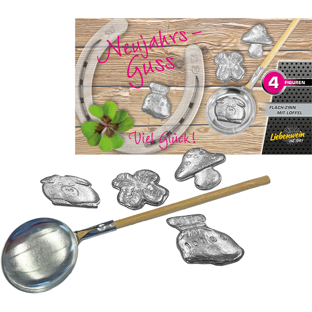 Neujahrs-Guss Flach-Zinn mit Löffel